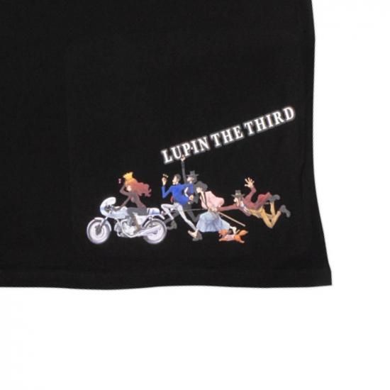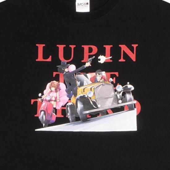 フロントには車とバイクで駆け抜けるルパン一味を、バックにはおなじみのメンバーが勢揃いしたシーンをプリント。