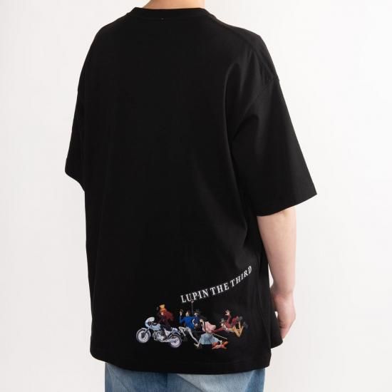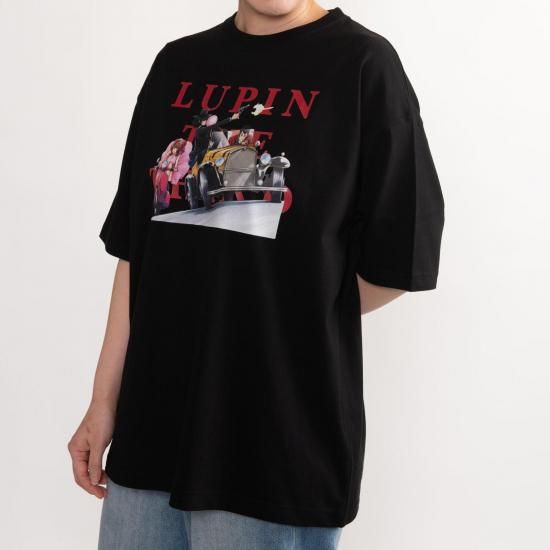 『ルパン三世 PART5』のアイキャッチをモチーフに、疾走するルパン・次元・不二子たちを描いたビッグシルエットTシャツ。