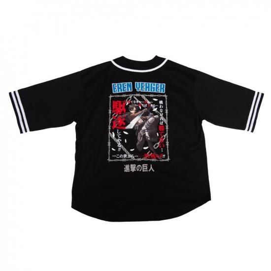 「進撃の巨人」エレン・イェーガーをテーマにしたビッグシルエットのベースボールシャツ。