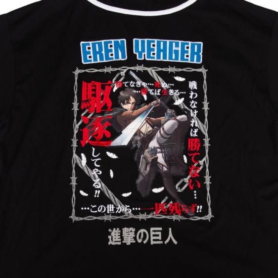 背面には「駆逐してやる!!」の名セリフと共に、立体機動装置を構えるエレンを大胆にプリント。