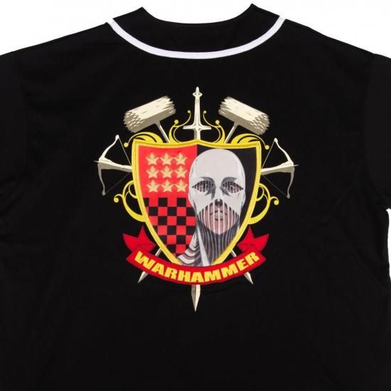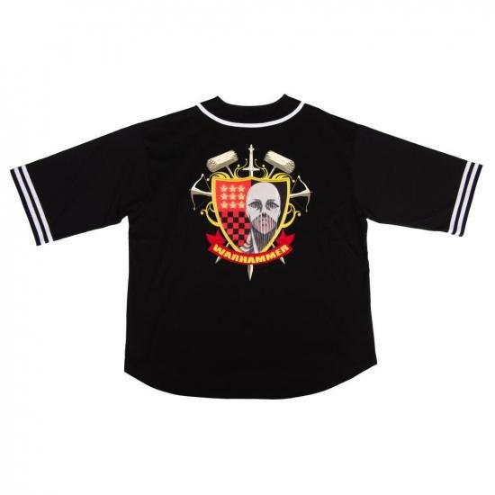 背面には盾の紋章をモチーフに、戦鎚の巨人の威厳をプリントとワッペンで大胆に配置。