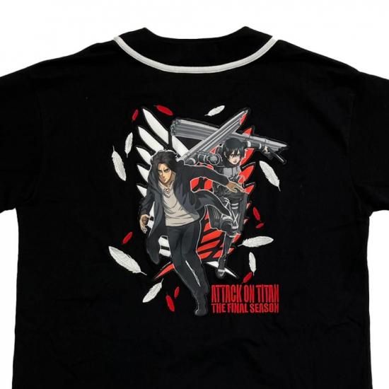 「進撃の巨人 The Final Season」より、エレン&ミカサを描いたビッグシルエットベースボールシャツが登場。