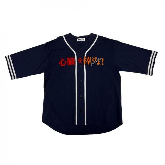 フロントには名セリフ「心臓を捧げよ!」を刺繍で大胆に配置し、背面には二人の戦闘姿を迫力あるプリントとワッペンで再現。