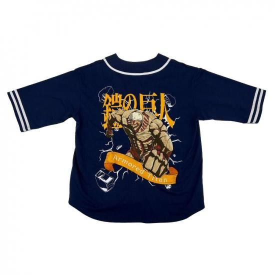 「進撃の巨人」より、鎧の巨人をモチーフにしたベースボールシャツが登場。