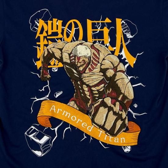 背面には圧倒的な力を誇る鎧の巨人の姿を大胆にプリントし、迫力あるデザインに仕上げました。