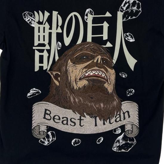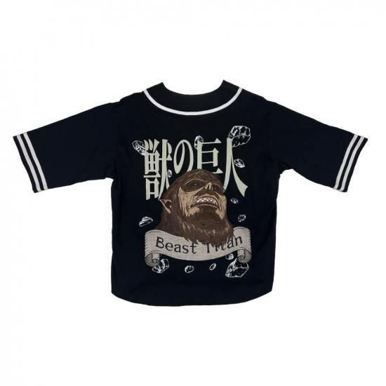 「進撃の巨人」より、獣の巨人をモチーフにしたビッグシルエットのベースボールシャツが登場。