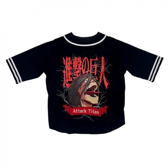 「進撃の巨人」より、エレンの巨人化シーンを大胆に描いたベースボールシャツが登場。