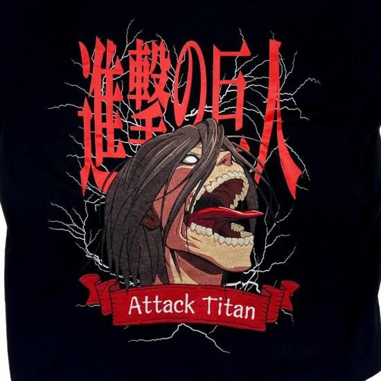 背面には怒りと闘志を爆発させる巨人化エレンの姿を迫力満点にプリントし、赤い「進撃の巨人」ロゴと稲妻の演出が作品の熱量を感じさせます。